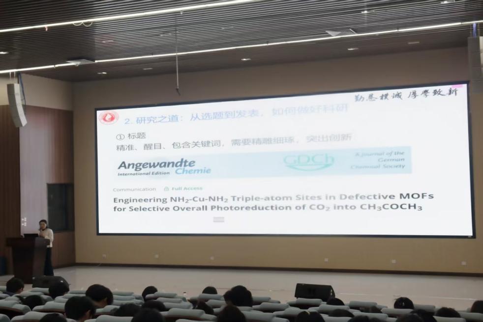 随后四位导师依次登台分享,为同学们的科研疑问,分享自己的见解和经验。侯燕萍教授围绕学术导航、研究之道、韧性修炼、师生共创四大板块,向同学们介绍了研究生阶段是从“学习知识”向“创造知识”转变的阶段,核心是培养发现问题和解决问题等能力,还分享了从科研选题、实验设计到论文写作的全流程技巧,强调时间管理与学术诚信的重要性。